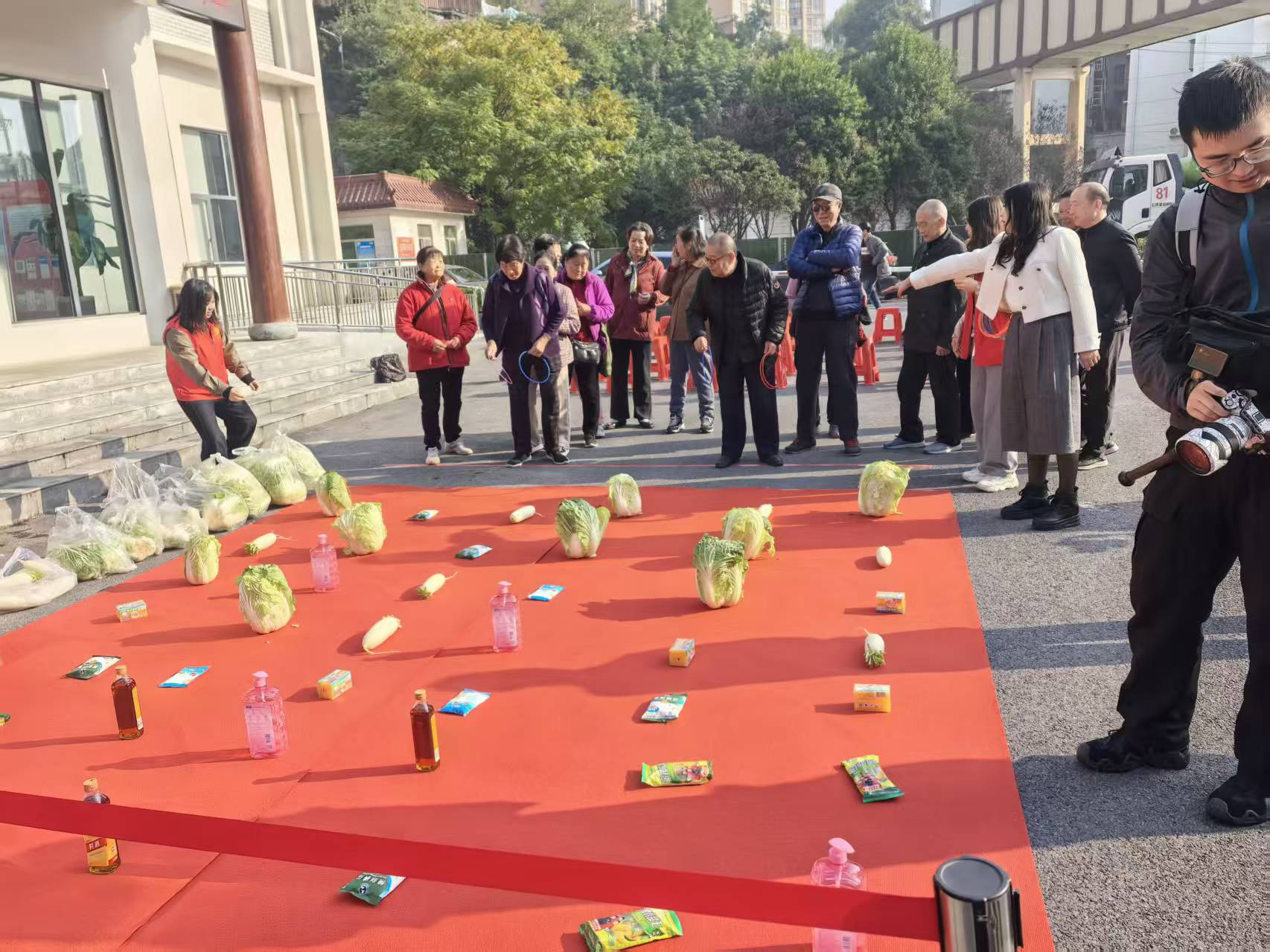 趣味保龄球项目中,老人们瞄准塑料瓶阵滚球,击倒瓶子时的欢呼声此起彼伏;欢乐套圈前,大家瞄准蔬菜、油盐酱醋等生活物资投掷,有人接连套中奖品,开心得像个孩子;球拍托球健步走环节,老人们小心翼翼托球前行,现场满是欢声笑语。