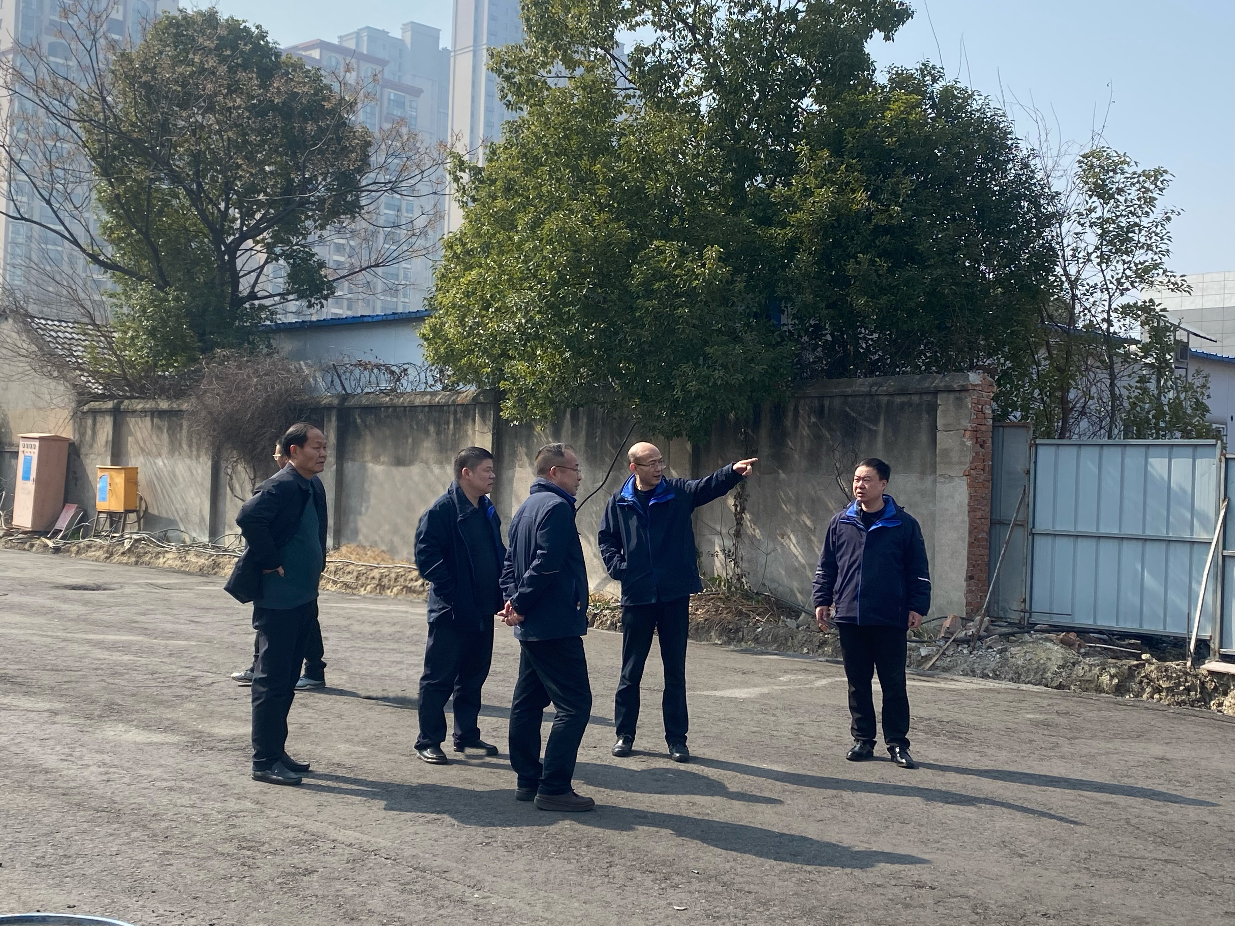 图为实地查看仓储项目建设进展