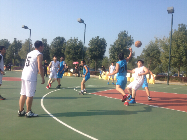 近日,市供水总公司工会组织了一场精彩纷呈的篮球赛,推动群众体育运动开展,来自生产、经营、三产、机关的4支代表队同场竞技,经营线代表队夺得冠军,图为比赛场景。