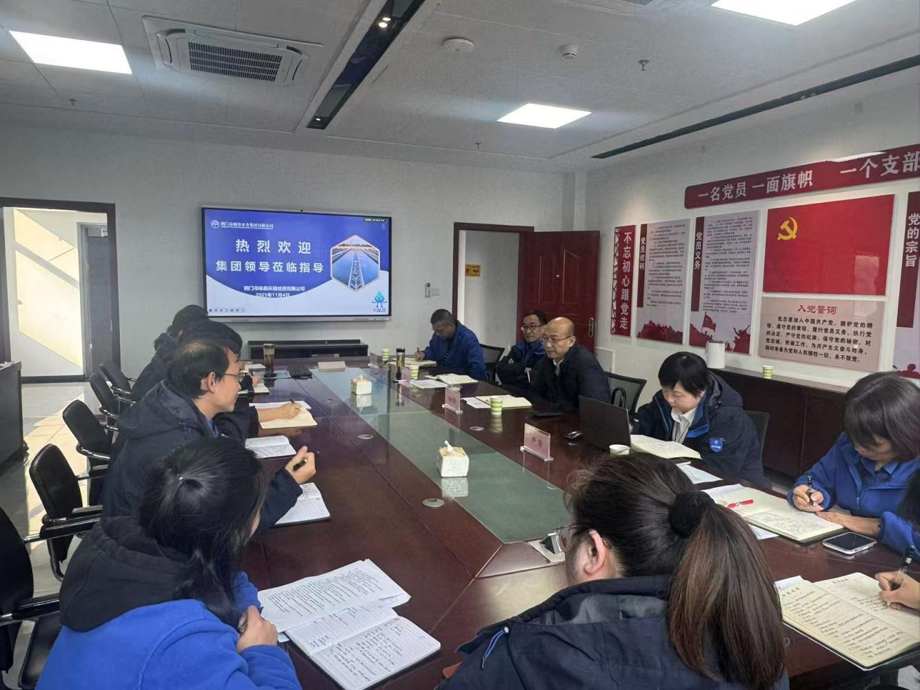 11月4日下午,市水务集团党委书记、董事长陈永根带队赴荆门市咏泉环境检测有限公司(以下简称“咏泉公司”),围绕“十四五”战略复盘与“十五五”规划开展专题调研。